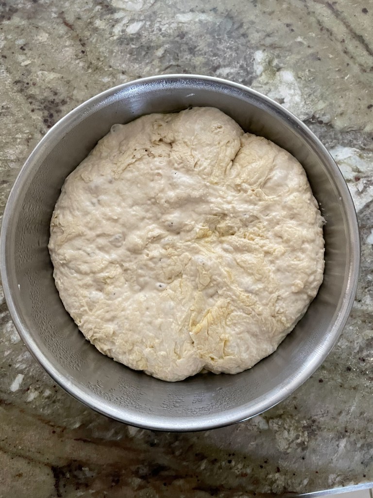 Cover the bowl with a wet towel and place in the fridge for at least twelve hours, preferably twenty four.
